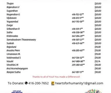 Funds Raised at Canada Kandasamy Temple (Oct 2017)